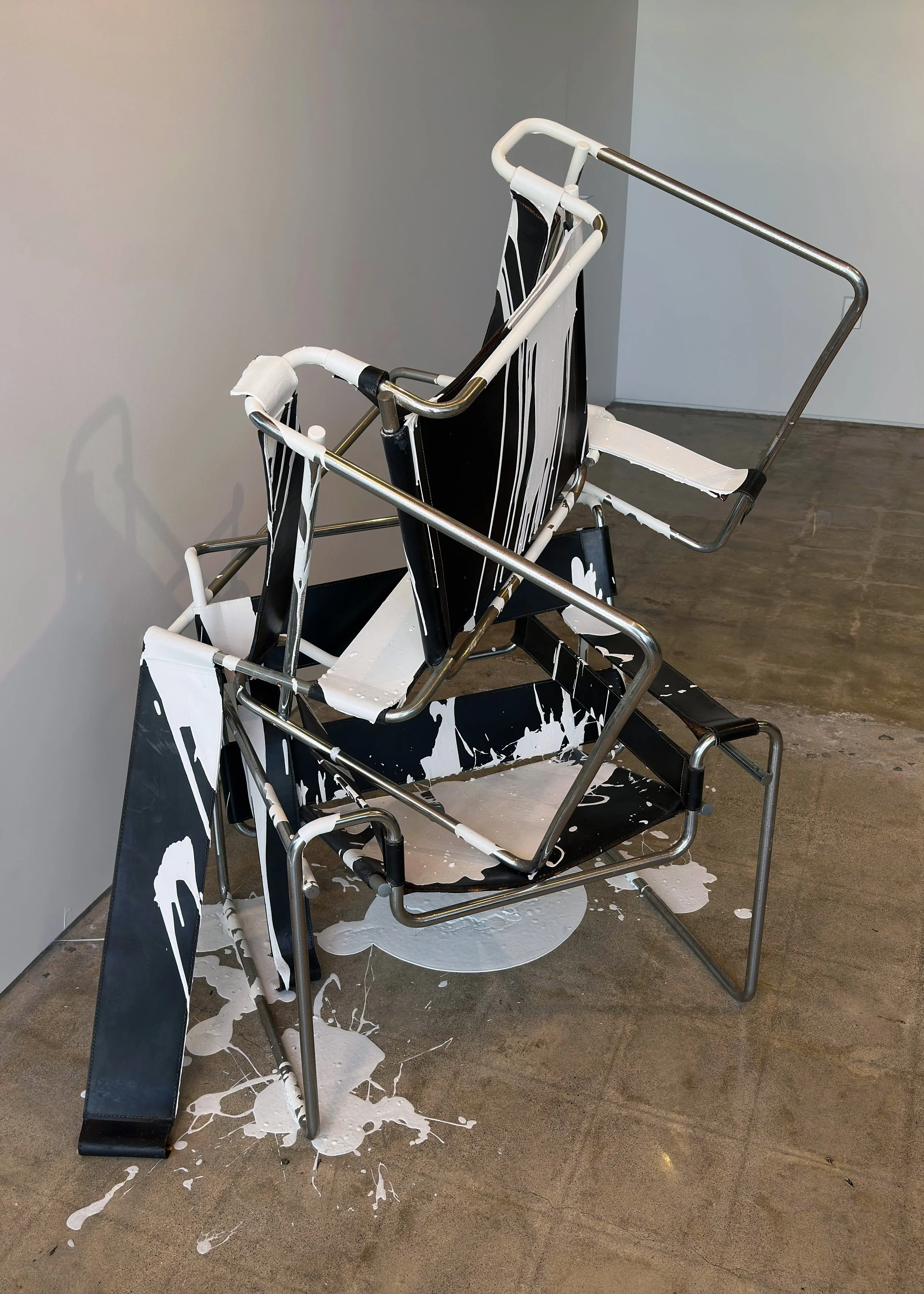 Yes, that is a can of “ITZEN off-white” poured on two iconic Wassily chairs.